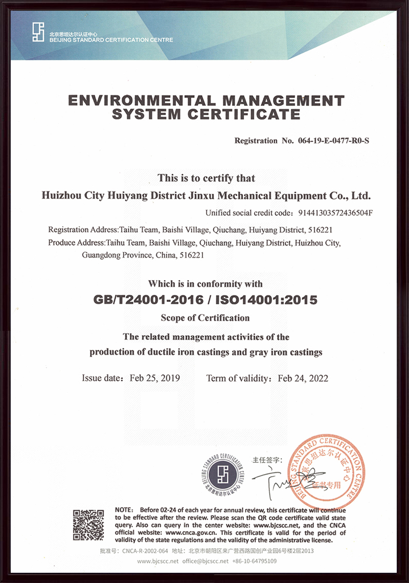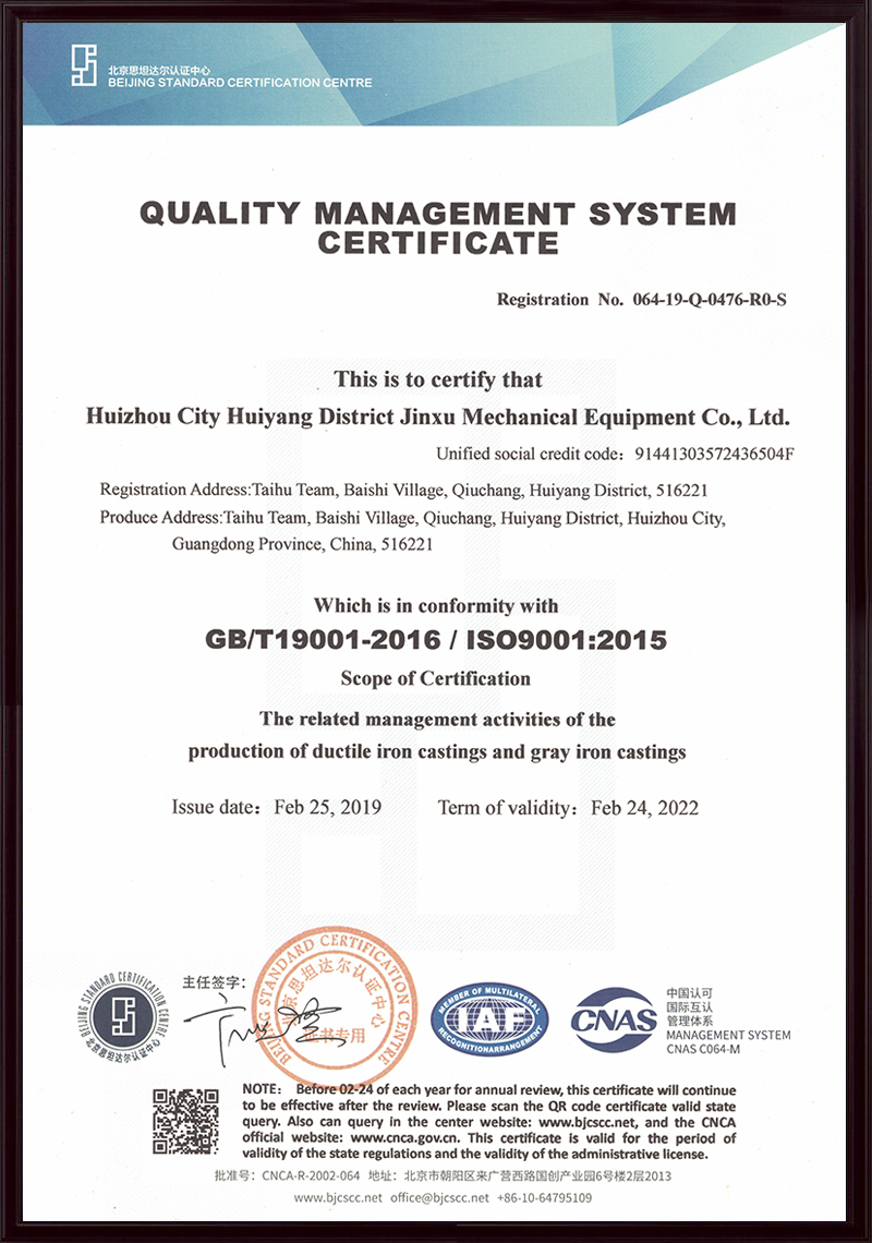 惠州市惠陽區(qū)金旭機(jī)械設(shè)備有限公司(原名深圳金泉鑄造廠),始建于1992年2月,公司坐落于惠州市惠陽區(qū)秋長白石大湖工業(yè)區(qū),是一家集模型、鑄造、機(jī)械加工于一體的綜合型企業(yè),主要生產(chǎn)高強(qiáng)度高韌性球墨鑄鐵、灰鑄鐵及鑄銅、鑄鋁等各種材質(zhì)及牌號(hào)鑄件。